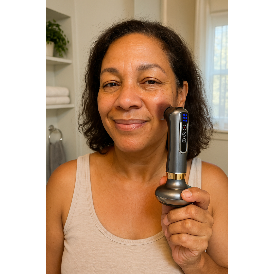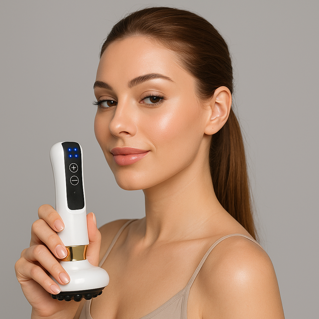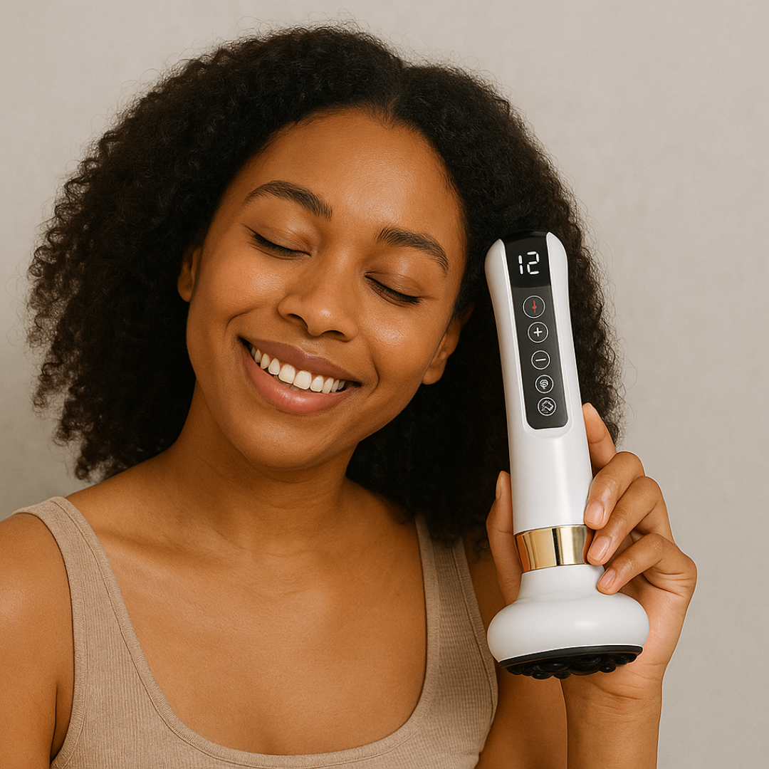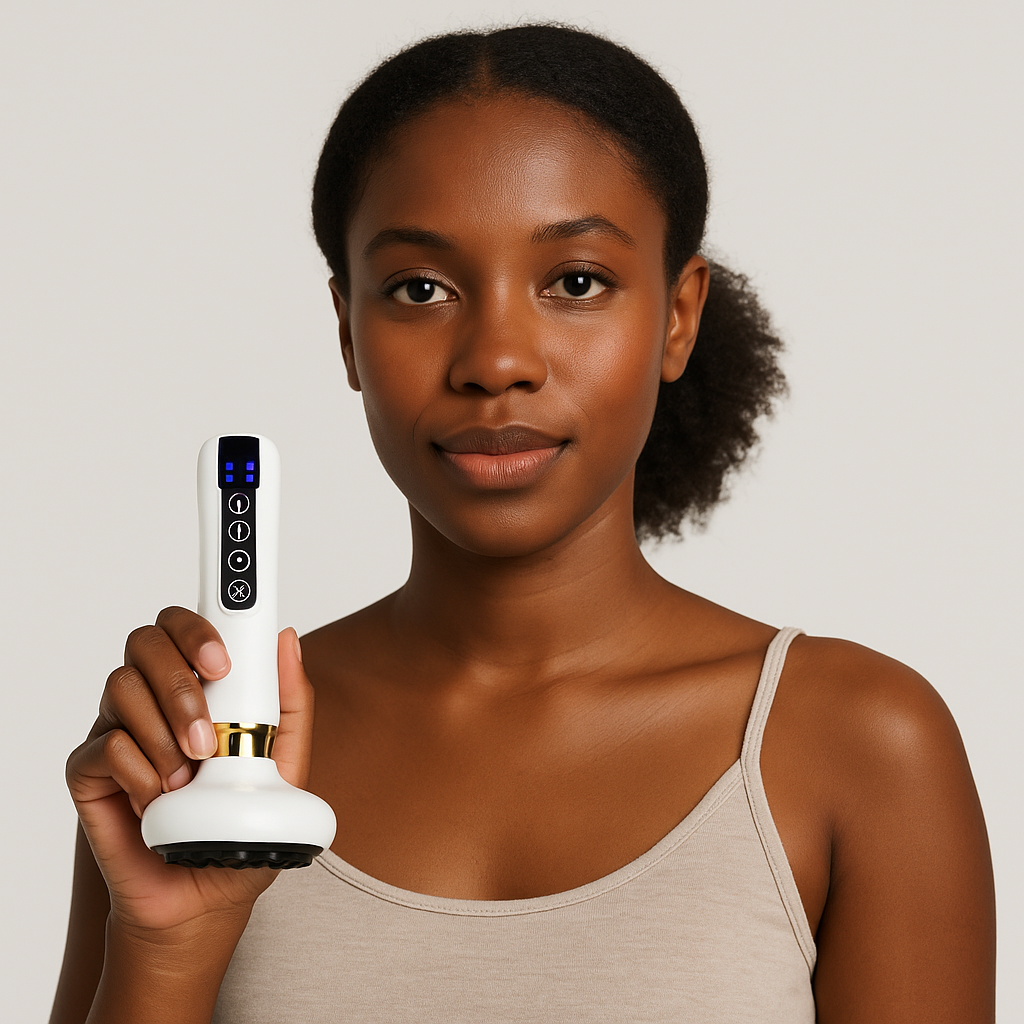 It combines. vacuum suction, gentle heat, and deep vibration massage to stimulate circulation, release muscle tension, and firm the skin.